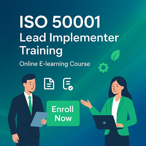 Enrol In Iso 50001 Lead Implementer CourseUpgrade your expertise with our comprehensive ISO 50001 Lead Implementer Training Online (E-learning) program, specially designed for professionals aiming to implement an effective Energy Management System (EnMS). This course provides in-depth knowledge of ISO 50001 requirements, documented information, risk-based approaches, and certification steps. With expert video tutorials, detailed handouts, animated sessions, and online exams, this E-learning course offers complete flexibility and globally recognized certification. Course Highlights: Video tutorials for all sessions 200+ pages of handouts Editable sample documents Exemplar Global recognized certificate Enrol Now & Become a Certified ISO 50001 Lead Implementer.