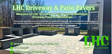 Lhc Driveway & Patio PaversWelcome to LHC Driveway & Patio Pavers, your premier choice for expert paving solutions in Midlothian. Specializing in driveway pavers and patio pavers, we craft stunning outdoor spaces that enhance the beauty and functionality of your home. Whether you're dreaming of stylish outdoor kitchens or elegant patios, our team has the expertise to bring your vision to life. From durable driveway pavements to charming patios pavers, we use only the highest quality materials for lasting results. Our comprehensive services also include creating attractive sidewalks and installing durable paving slabs. When searching for top paving companies near me, trust our commitment to excellence and superior craftsmanship. Address: 15776 WC Main St, Midlothian, VA 23113, United States Phone Number: +1 804-781-9155 Business Hours: Monday: 8:00am-8:00pm Tuesday: 8:00am-8:00pm Wednesday: 8:00am-8:00pm Thursday: 8:00am-8:00pm Friday: 8:00am-8:00pm Saturday: 8:00am-8:00pm Sunday: 8:00am-8:00pm Services: Paving Contractor Payment Methods: Check, Credit Cards, Debit Cards, Visa, ATM / Debit, Mastercard, AMEX, Paypal, Discover Keywords: Driveway & Patio Pavers, Patio Pavers, Outdoor Kitchens, Patios, Driveway Pavements, Patios Pavers, Pavers and Patios, Sidewalks, Paving Companies, Paving Slabs, Paver Stone