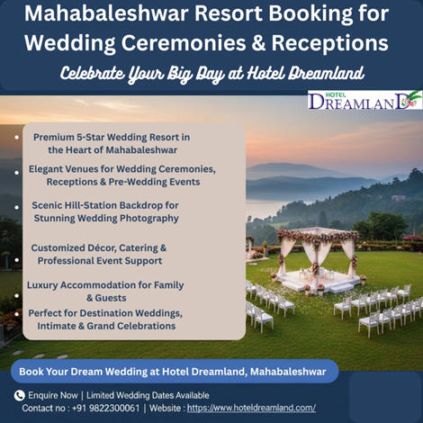 Celebrate your big day at Hotel Dreamland, a premium choice for Mahabaleshwar resort booking for wedding ceremonies and receptions. Elegant venues, scenic hill views, luxury stays, and professional event support for a perfect destination wedding.