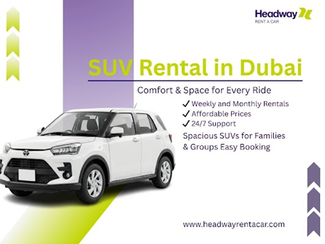 Affordable Suv Options Available Across Dubai CityHeadway Rent a Car provides SUV for rent in Dubai for customers who want comfort and space without complications. Our fleet includes clean and road-ready SUVs suitable for daily commutes, weekend travel, or longer usage. These vehicles are ideal for navigating Dubai roads with confidence and ease. We focus on customer satisfaction through simple booking, transparent requirements, and professional service. Whether you are a resident or visitor, our SUV rentals help you move freely across the city with a reliable vehicle designed for everyday use. https://headwayrentacar.com/suv-car-rental-dubai/ Mobile: +971504323629 website - https://headwayrentacar.com/ Email: support@headwayrentacar.com Locations: 10A Street - Umm Ramool - Dubai - United Arab Emirates Instagram-https://www.instagram.com/headwayrentacar/ Facebook- https://www.facebook.com/headwayrentcar/ Youtube- https://www.youtube.com/@HeadwayCarRent linkedin- https://www.linkedin.com/company/headwayrentacar/