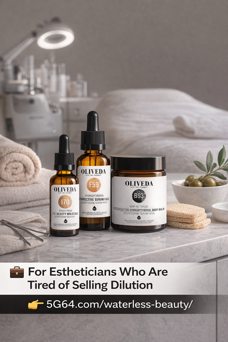 For Estheticians Who Are Tired Of Selling DilutionYou read ingredient decks. You understand formulation. You know when water sits at the top of the list. And you also know clients are getting smarter. Here’s the uncomfortable truth: Most skincare lines are water-based first. Which means your treatment room is built on diluted actives. Now imagine offering something different. ?? Waterless formulations ?? Concentrated hydroxytyrosol-based actives ?? Olive bioactives instead of filler ?? A story your clients haven’t already heard This isn’t trendy “clean beauty.” It’s formulation strategy. Why This Matters in the Treatment Room • Higher concentration = stronger results • Smaller application amount = better margins • Unique positioning = competitive edge • Ingredient story = retail conversion tool Clients don’t ask for “water-based.” They ask for results. If you’re a professional esthetician exploring differentiated product lines, this is worth reviewing. No hype. Just formulation facts. ?? 5G64.com/waterless-beauty/ Because professionals shouldn’t retail water.